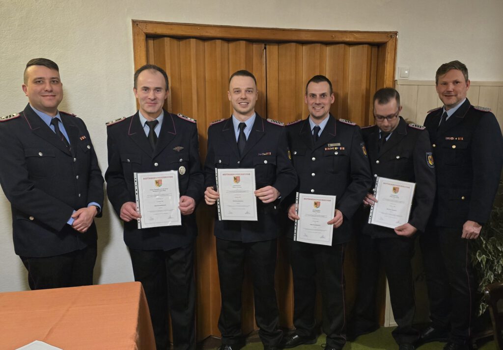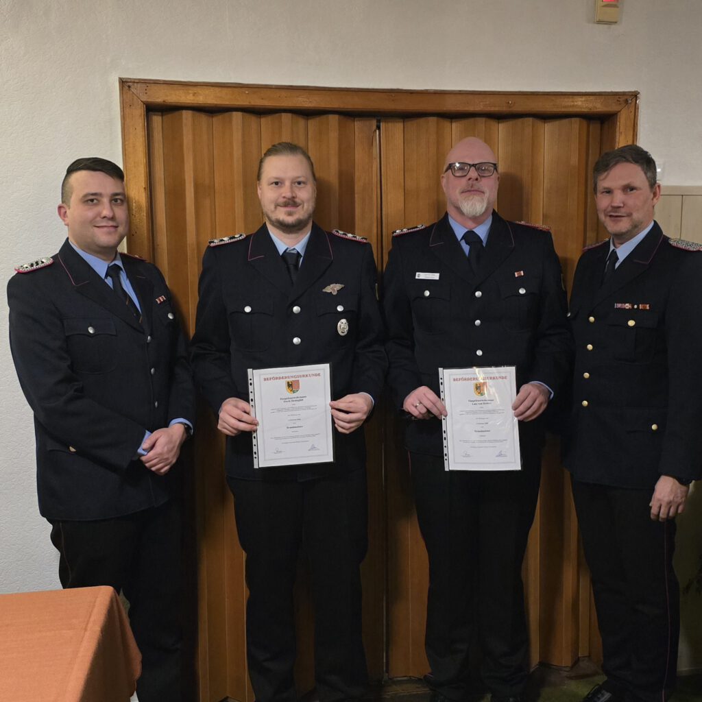 – zum Oberbrandmeister: Richard Engberding, Malte Marschall, Niklas Polack, Julian Rabanus