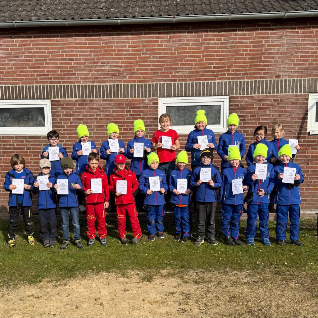 Große Freude bei unserer Kinderfeuerwehr: Fünf Kinder haben geminsam in Mulsum mit anderen Kids aus unserer Gemeinde erfolgreich die Kinderflamme Stufe 1 abgelegt.