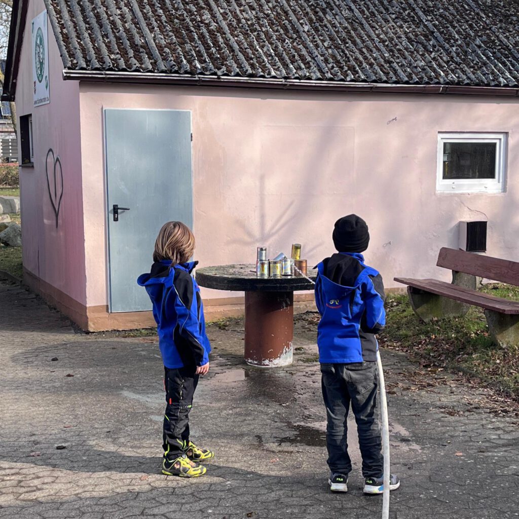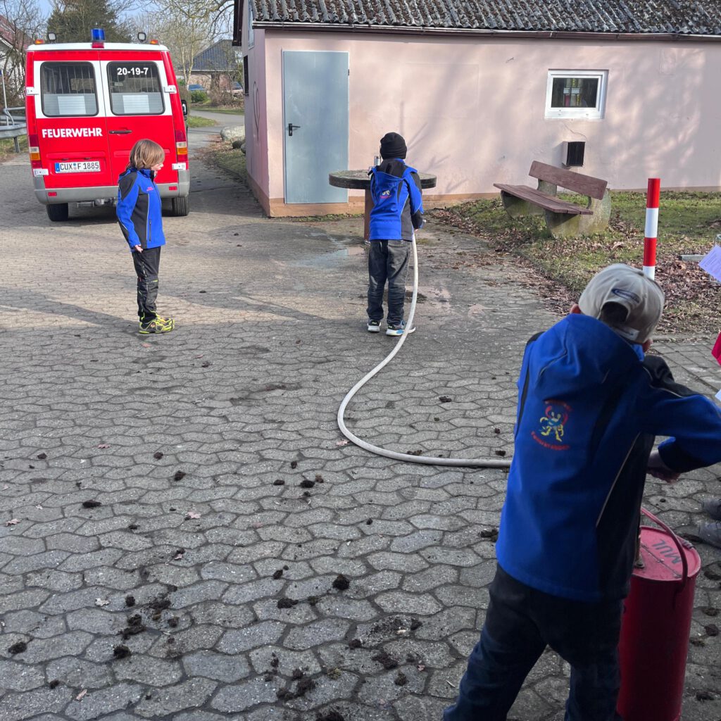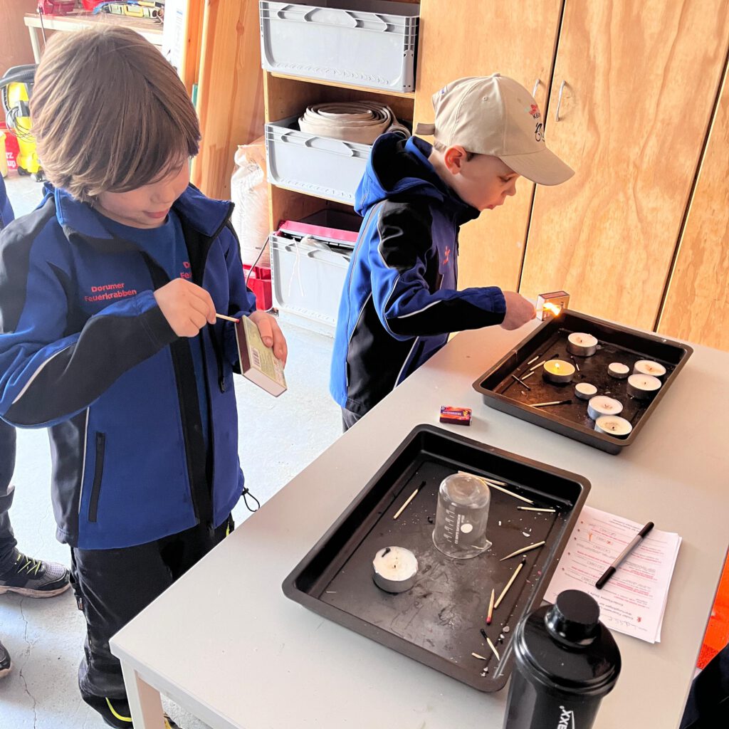 Im Rahmen verschiedener altersgerechter Aufgaben mussten die Kinder zeigen, was sie in der Kinderfeuerwehr gelernt haben. Dazu gehörten unter anderem das richtige Absetzen eines Notrufs, das Erkennen verschiedener Feuerwehrgeräte sowie grundlegendes Wissen über das richtige Verhalten im Notfall. Aber auch praktisches Aufgaben, wie das Zielspritzen mirt der Kübelspritze und das sichere Anzünden einer Kerze mit einem Streichholz waren zu meistern.