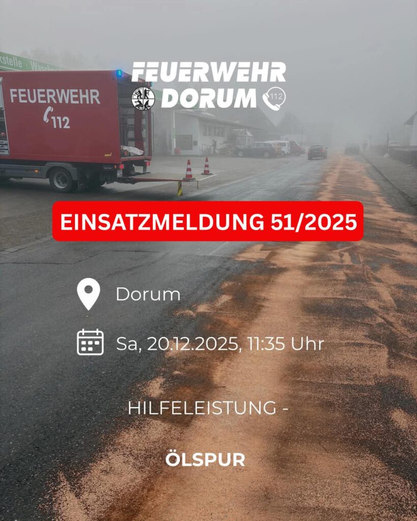 Am Samstagmittag, den 20. Dezember 2025, wurden wir zu auslaufenden Betriebsstoffen in die Ortsmitte von Dorum alarmiert.